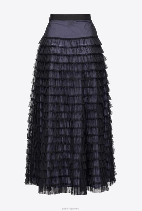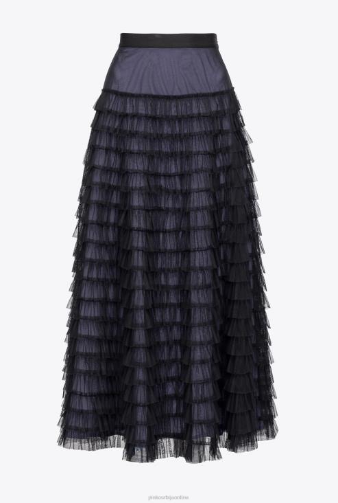 дуге сукње | Pinko црна/јоргована дуга сукња од тила са воланом JFH4912