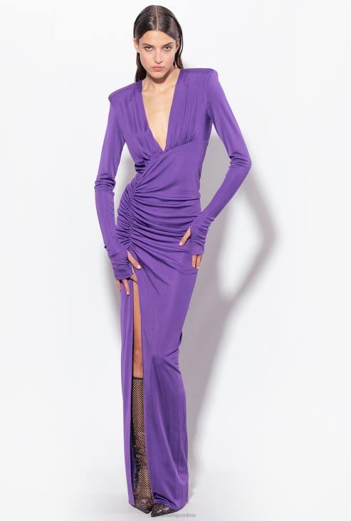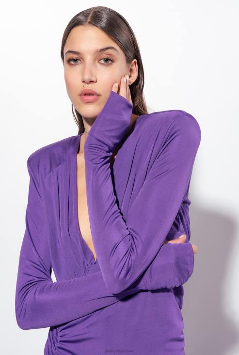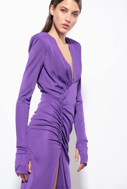 дуге хаљине | Pinko виола љубичаста сјајна хаљина на једно раме JFH4167