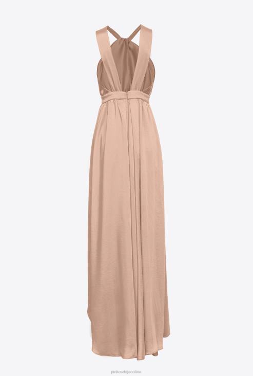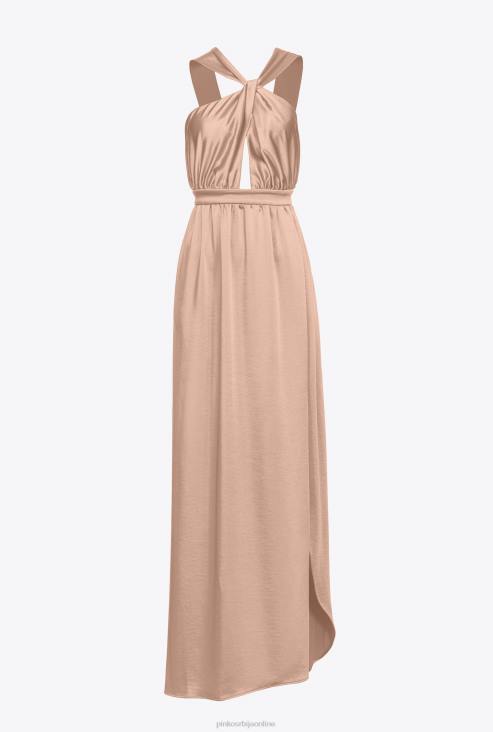 дуге хаљине | Pinko камеја розе дуга сатенска хаљина са прорезом JFH450
