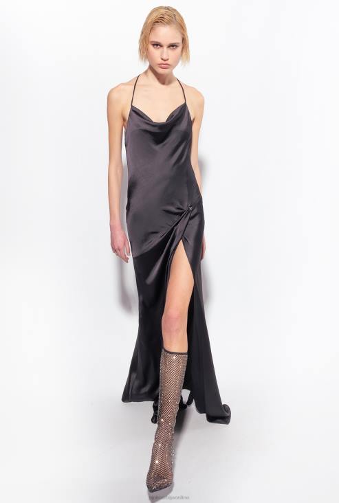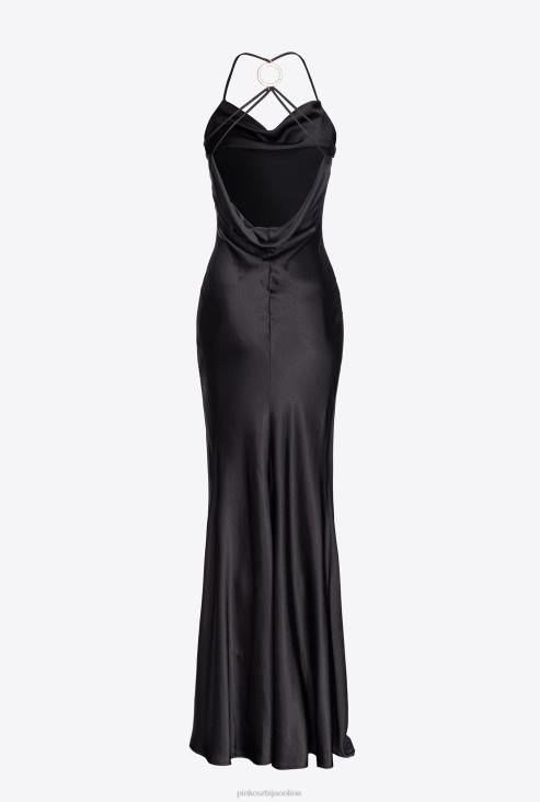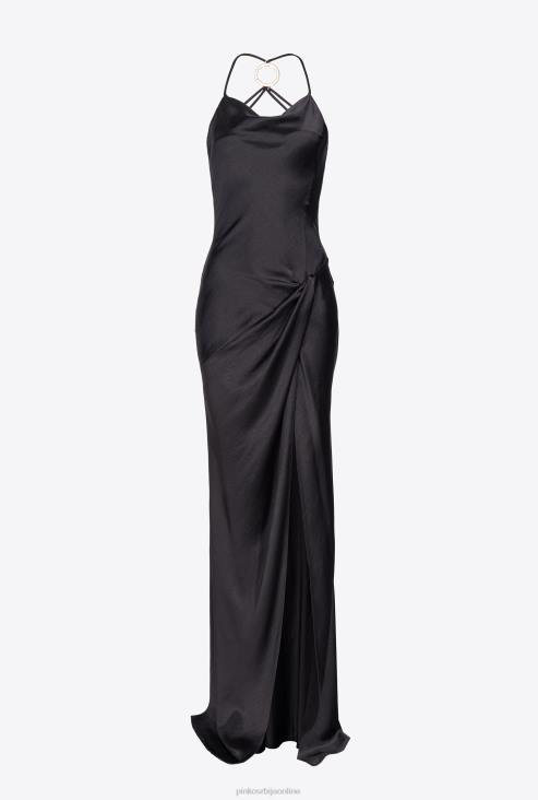 дуге хаљине | Pinko лимузина црна дуга сатенска хаљина са детаљима прстена JFH448