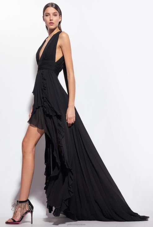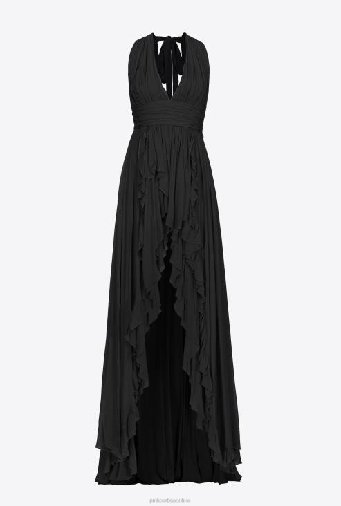 дуге хаљине | Pinko лимузина црна дуга хаљина са воланима JFH4186