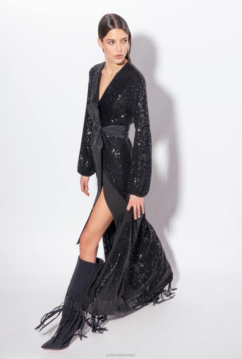 дуге хаљине | Pinko лимузина црна хаљина са шљокицама JFH4197