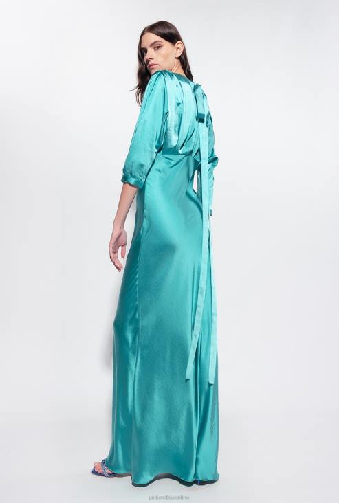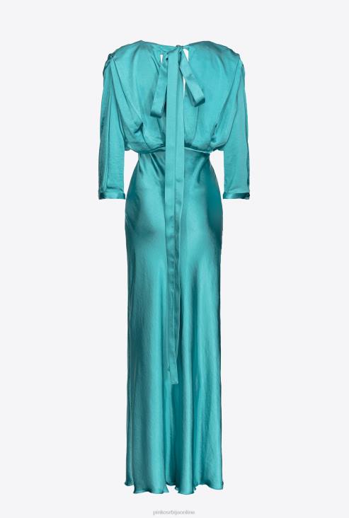 дуге хаљине | Pinko Плави сатенска хаљина са машном JFH4169