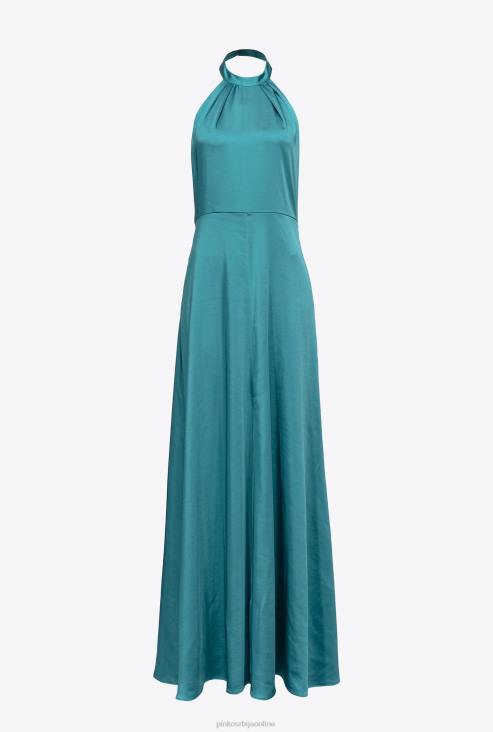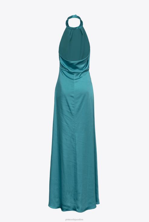 дуге хаљине | Pinko Плави сатенска хаљина са отвореним леђима JFH451