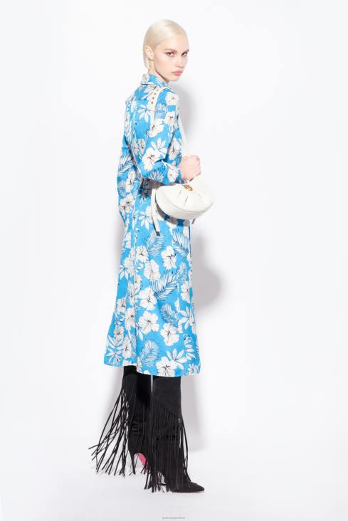 дуга хаљина од жакардне тканине са цвјетним принтом по цијелој површини. крагна кошуље, џепови на грудима украшени преклопима и каиш за везивање у струку од одговарајуће тканине. копчање на предњу дугмад. - модел је висок 175 цм и носи величину 40.