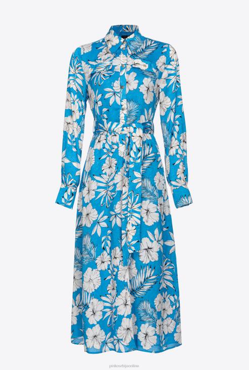 дуге хаљине | Pinko тиркиз / путер / црна графичка цветна кошуља хаљина JFH452
