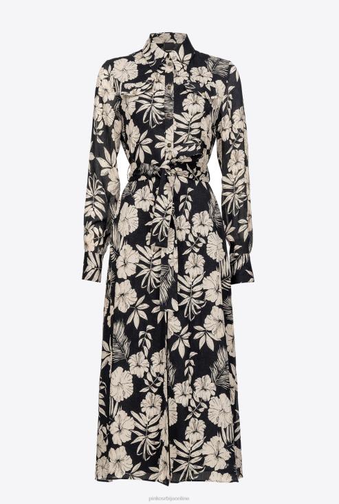 дуге хаљине | Pinko црно/путер графичка цветна кошуља хаљина JFH453