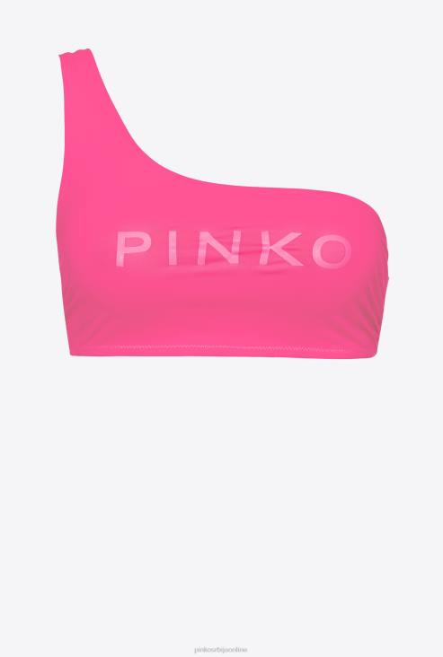Бикини мајица на једно раме од техничког растезљивог дреса, са одштампаним розе логом на предњој страни.