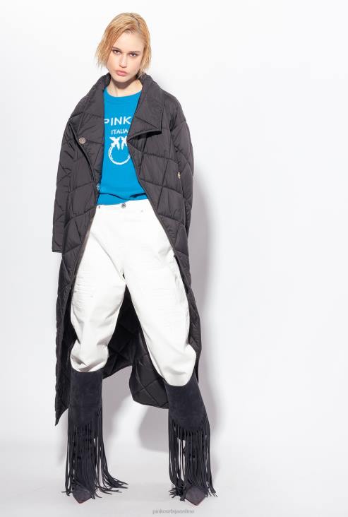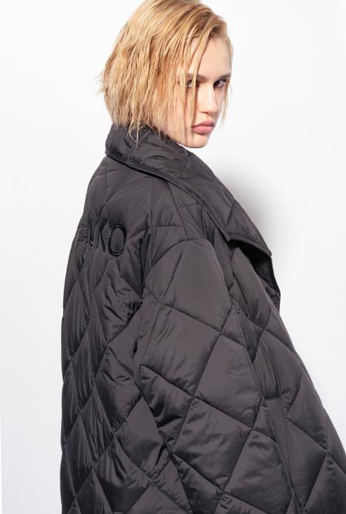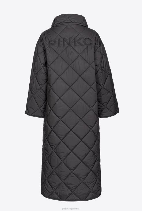 капути | Pinko лимузина црна прошивени макси капут са везом JFH4845