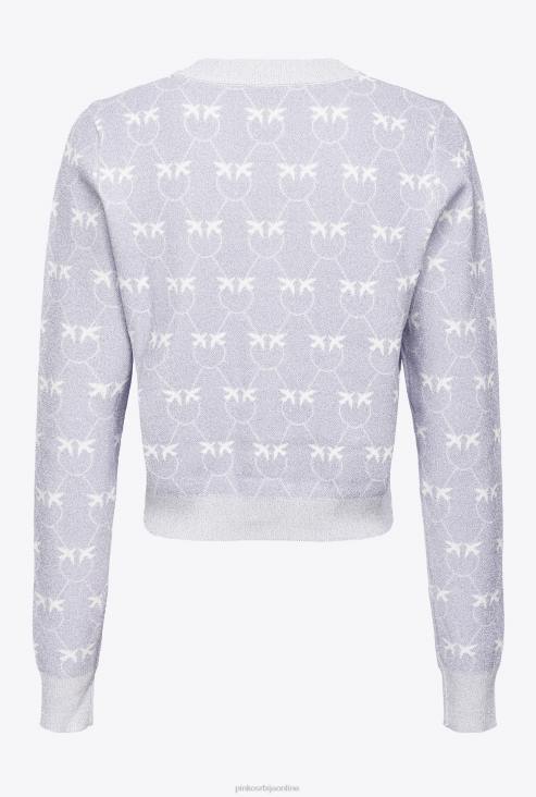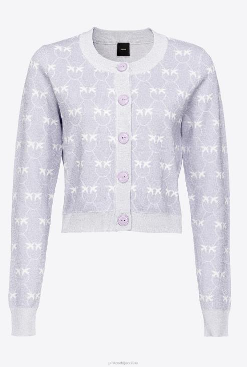 кардиган | Pinko лила/бела скраћени кардиган са монограмом од лурекса JFH4521