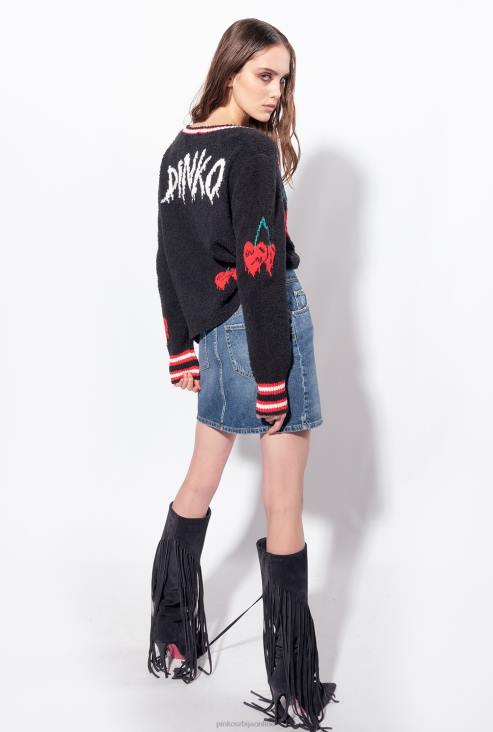 кардиган | Pinko мулти. Црна црвена кардиган са уметком од трешње JFH4533