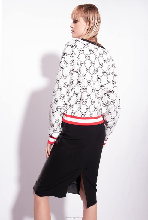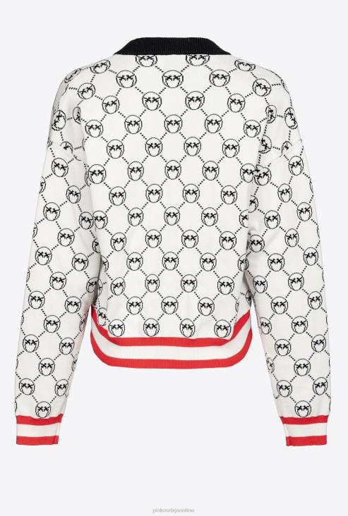 кардиган | Pinko мулт. бела/црна/црвена монограм жакард кардиган са везом вишње JFH4531