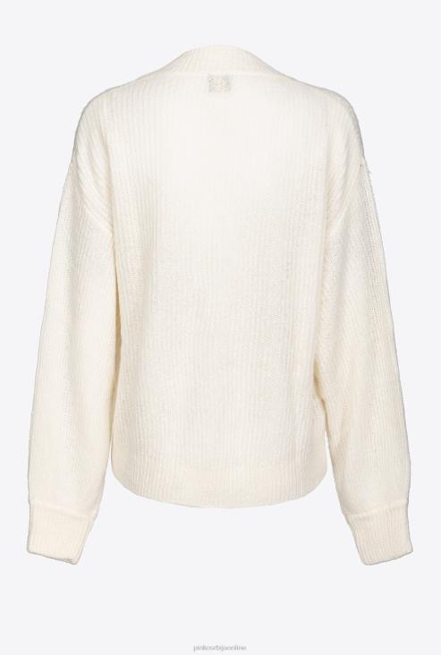 кардиган | Pinko свилено бело скраћени кардиган од ребра JFH4552