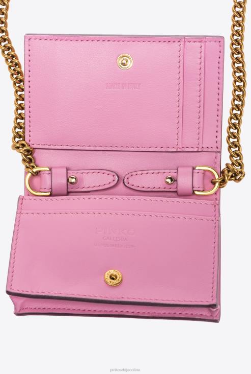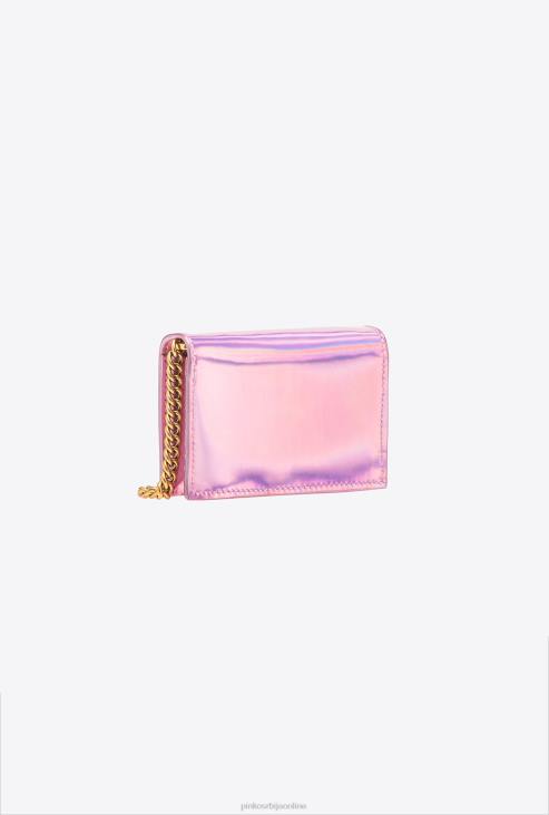 кожни држач кредитне картице у преливом изгледу направљен у италијанској кожи: добијен помоћу ексклузивног процеса штављења у којем се кожа више пута прска, комбинујући дигиталну технику са комбинацијом топлоте и притиска да би се реплицирао преливајући и опалесцентни ламинирани ефекат. предња клапна је прилагођена металном плочицом са дијамантским резом. ремен са танким ланцем који се може уклонити. овај додатак је део специјалне колекције капсула ограниченог издања која обухвата ексклузивне моделе ограниченог издања пинко галерије.