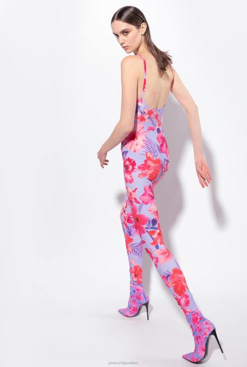 комбинезони и гаће | Pinko лила / светло розе / фуксија удобан комбинезон са принтом тропског цвећа JFH490