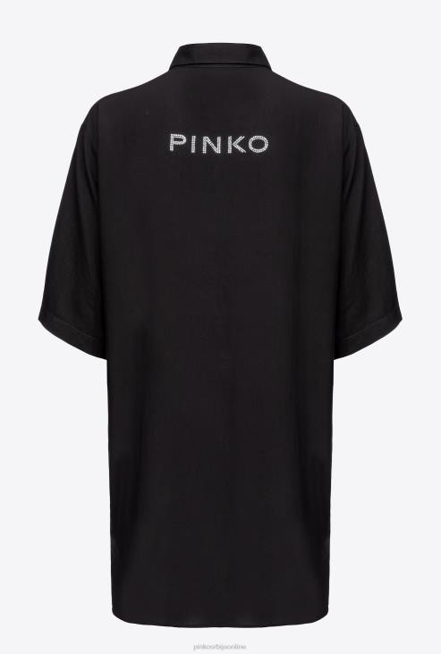 кошуље | Pinko лимузина црна дуга кошуља са логотипом од рхинестоне JFH4301