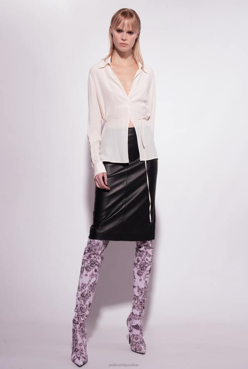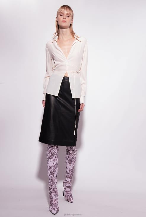кошуље | Pinko ружичасти дим бели свилена кошуља са краватом JFH4249