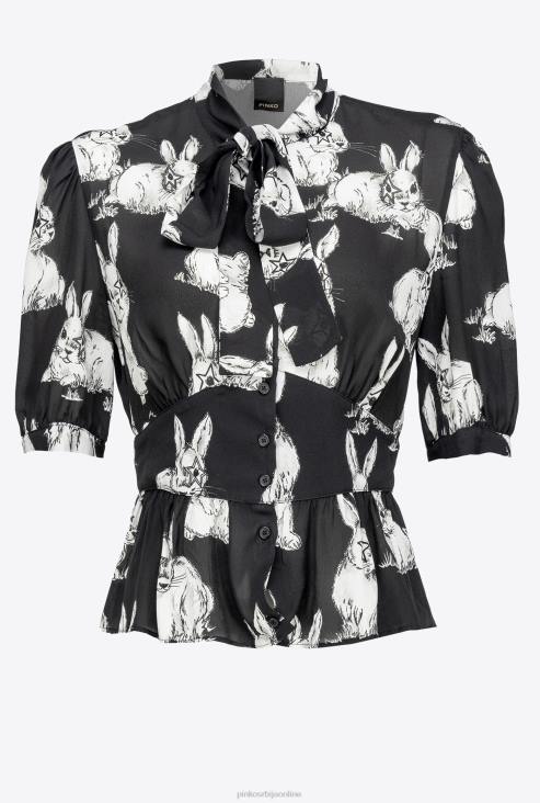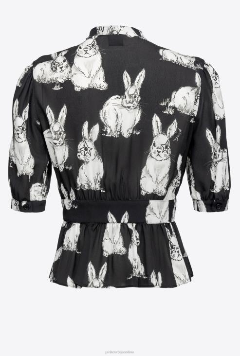 кошуље | Pinko црно/сиво/бело скраћена кошуља са принтом зеца JFH4296