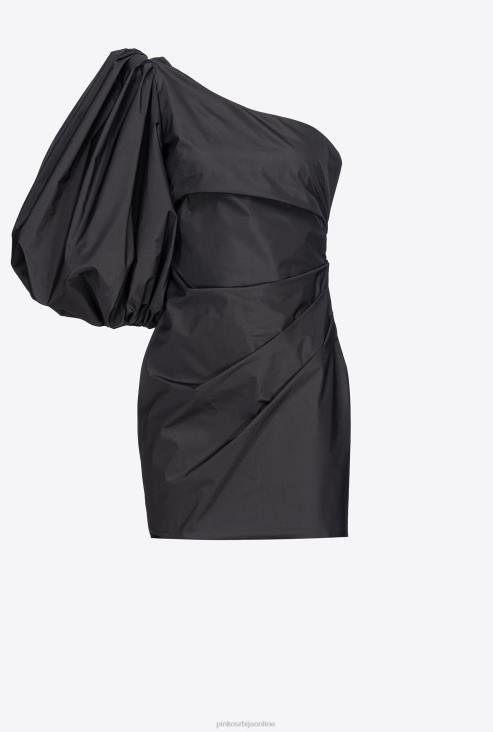 кратке хаљине | Pinko лимузина црна мини хаљина од тафта на једно раме JFH4174