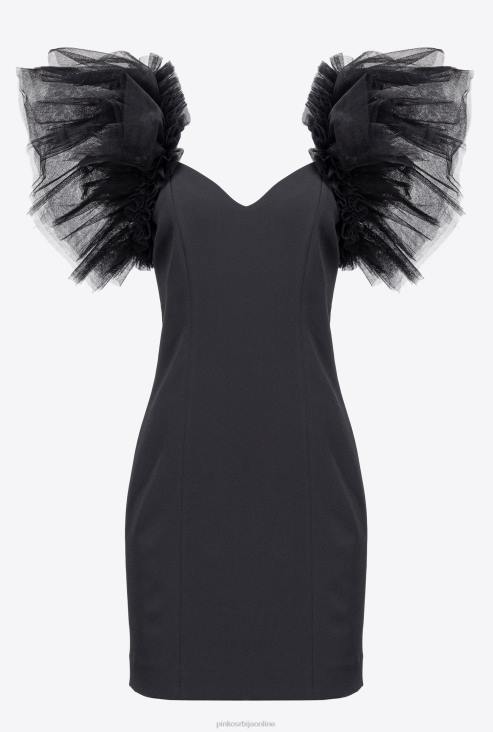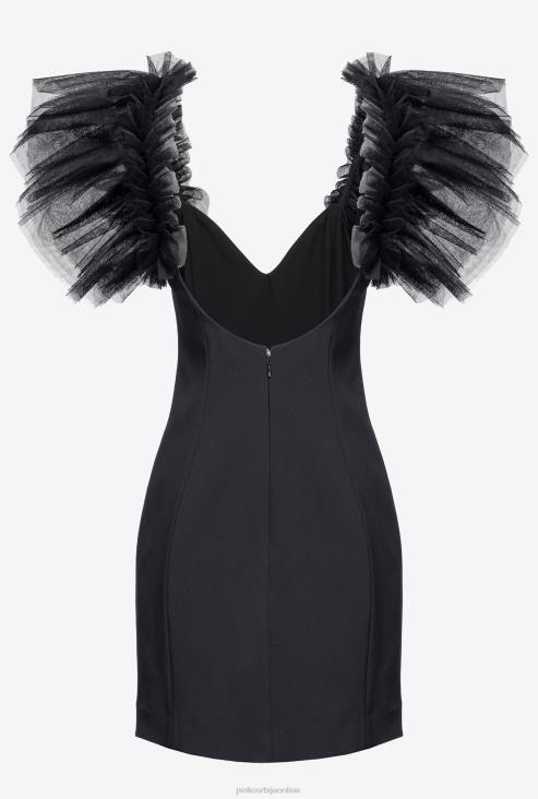 кратке хаљине | Pinko лимузина црна мини хаљина са тилом JFH4224