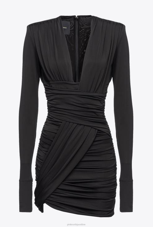 кратке хаљине | Pinko лимузина црна мини хаљина са укрштеним детаљима и драпирањем JFH4200