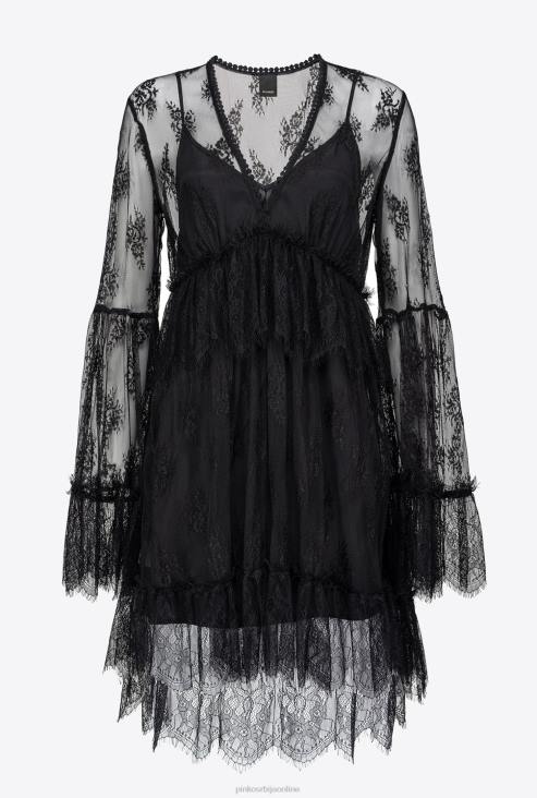 кратке хаљине | Pinko лимузина црна пертласта хаљина JFH4170