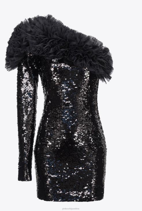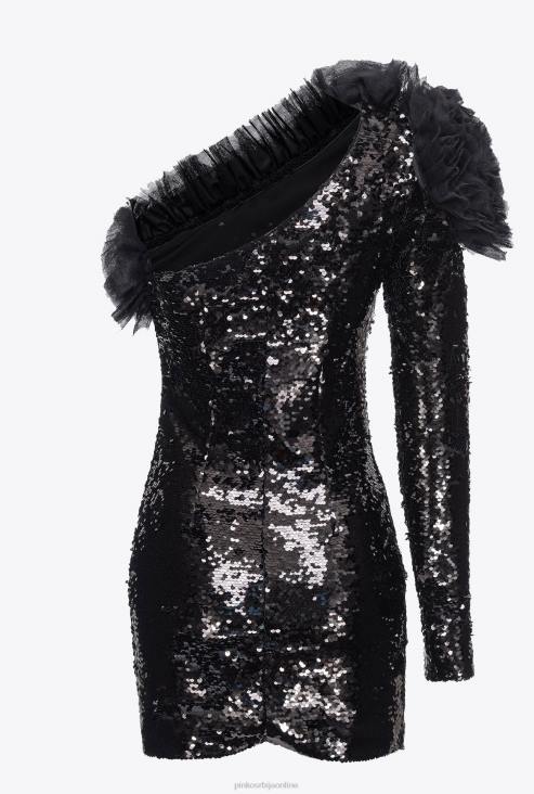 кратке хаљине | Pinko лимузина црна потпуно шљокичаста мини хаљина на једно раме JFH4173