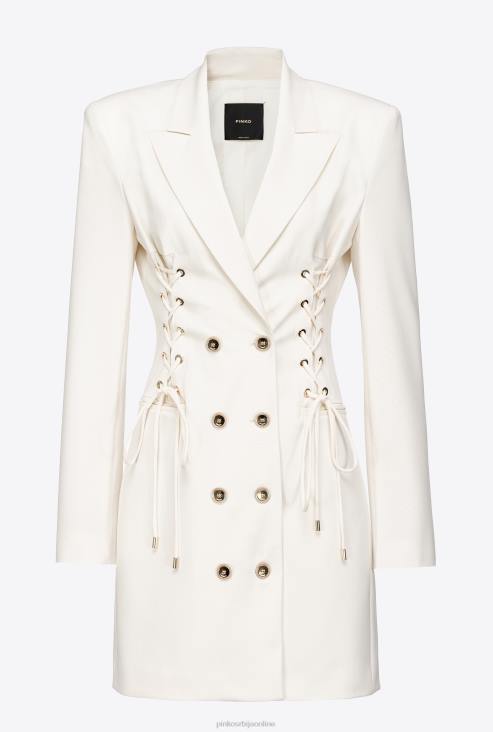 хаљина у стилу блејзера од поли вискозне тканине. са крагном са ревером, дугим рукавима и уметцима у стилу корзета са стране са предње стране, изнад џепова на шиљци. постројени. копчање на дупло копчање.