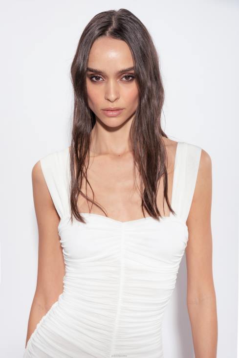 кратка хаљина без рукава од растезљивог вискозног дреса са драпираним флуидним ефектом. драга деколтеа на предњој страни и нараменице које вам омогућавају да носите комад са рамена. уски комад са скупом скроз доле. скривени централни патент затварач на леђима.
