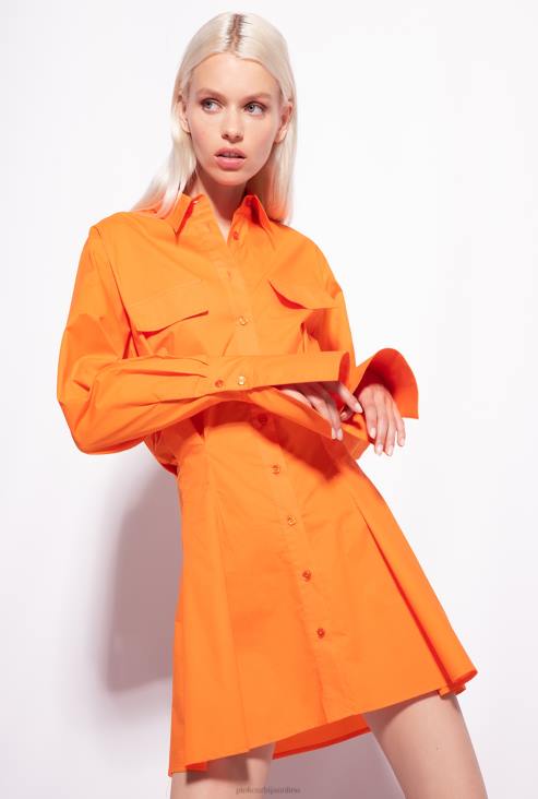 кратке хаљине | Pinko светло наранџаста кратка хаљина од памучне кошуље JFH464