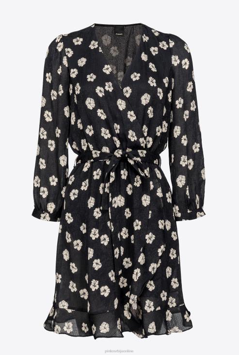 кратке хаљине | Pinko црна/екру графичка цветна мини хаљина JFH457
