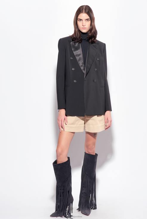 мекани памучни габардин шортс са благим растезањем. висок струк са јармом са украсима у облику птица на средини леђа и одговарајућим каишем од истог материјала са четвртастом копчом. благо широка ногавица са стрелицама, коси џепови на предњој страни и један џеп са преливом позади. патент затварач на предњој страни. - модел је висок 176 цм и носи величину 40.