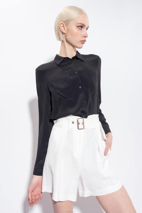 шортс од течне тканине од мешавине лана и вискозе. висок струк са омчама за каиш и каиш од одговарајуће тканине са квадратном копчом. благо лабаве ногавице са стрелицама на предњој страни, вертикални џепови са преливом са стране и џепови са преливом на леђима. зип причвршћивање.