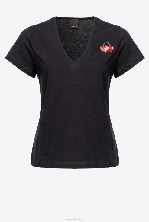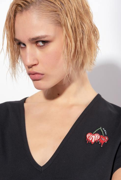 мајица | Pinko лимузина црна мајица са везом вишње JFH4454