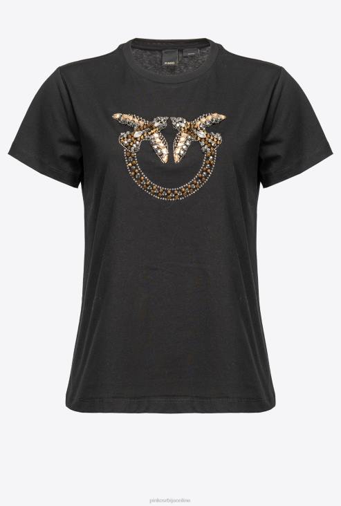 мајица | Pinko лимузина црна мајица са везом љубавних птица JFH4458