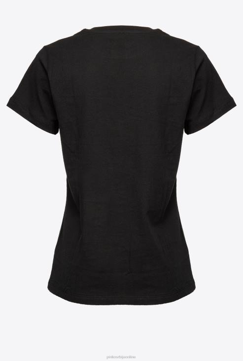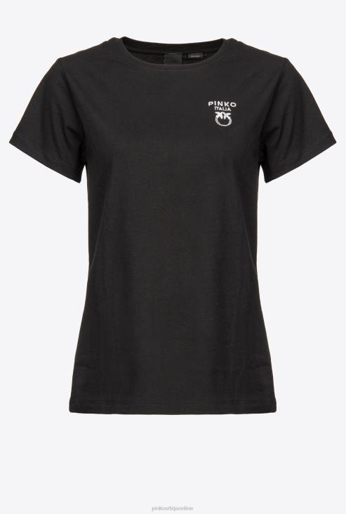 мајица | Pinko лимузина црна мајица са мини везом љубавних птица JFH4494
