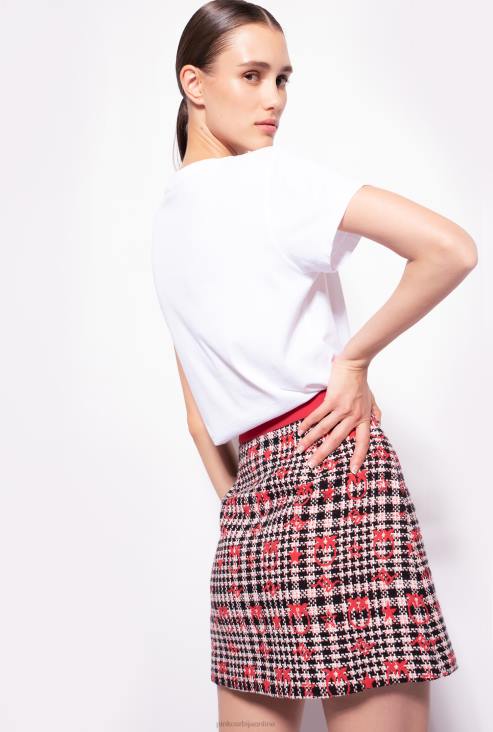 мајица кратких рукава од памучног дреса, са одштампаним розе логотипом прилагођеним малим штампаним зечевима и цветним везом. - модел је висок 177 цм и носи величину 40.