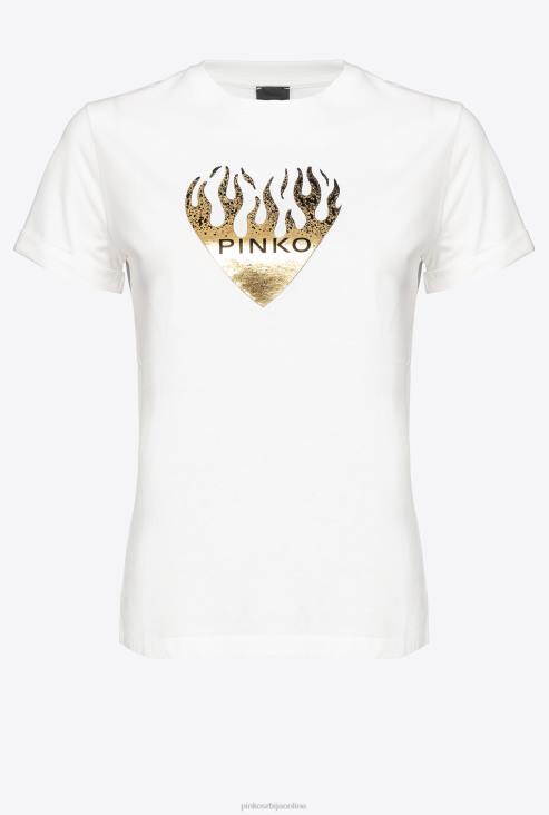 мајица | Pinko свилено бело мајица са принтом срца JFH4418