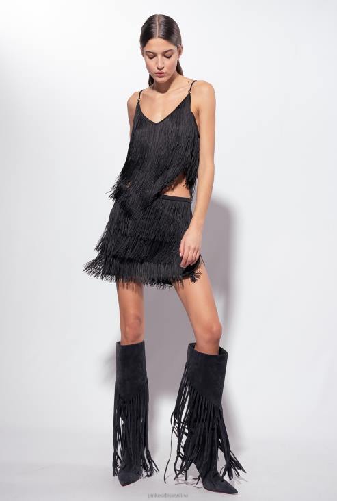 минице | Pinko лимузина црна мини сукња са финим ресама JFH4809