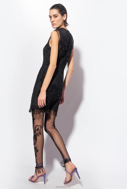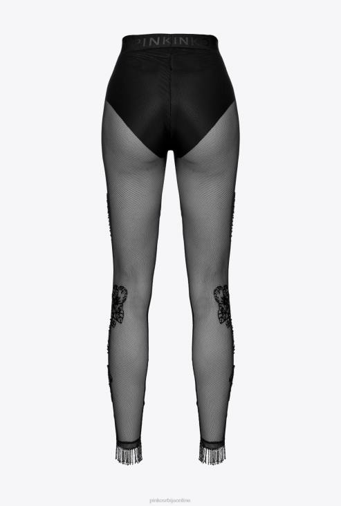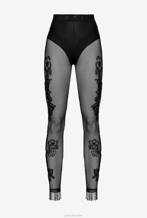 одећа за трчање и хеланке | Pinko лимузина црна хеланке од тила са тетоважним везом JFH4768