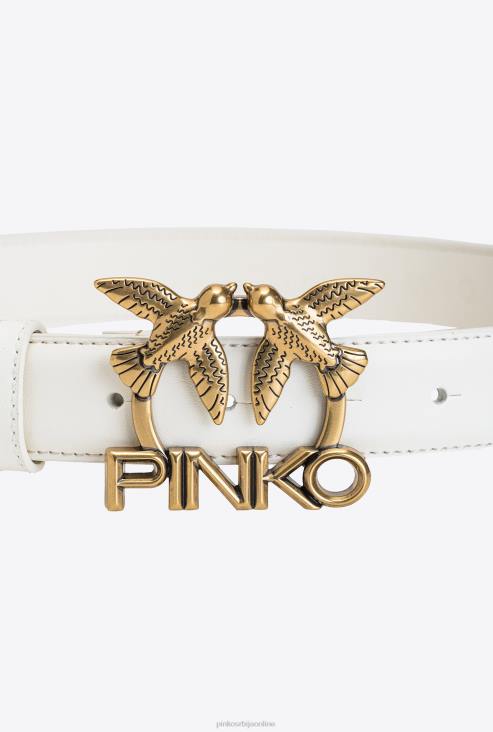 појасеви | Pinko бело-античко злато кожни каиш са логотипом љубавних птица JFH4972