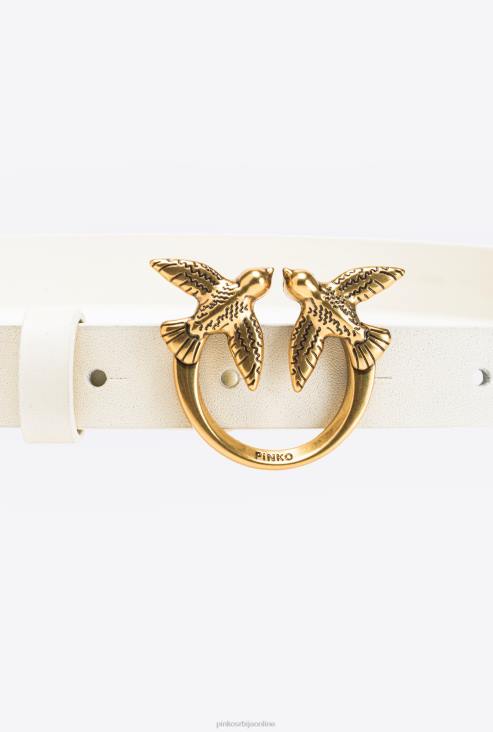 појасеви | Pinko бело-античко злато танак каиш за љубавне птице са копчама JFH4986