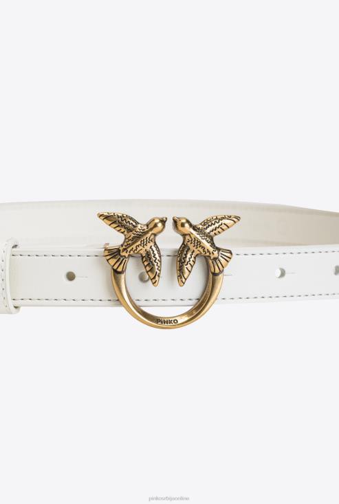 појасеви | Pinko бело-античко злато љубавне птице танки кожни каиш JFH41029