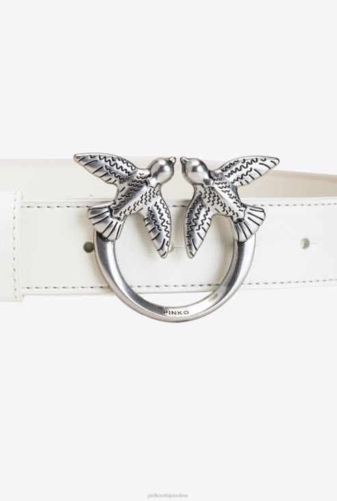 појасеви | Pinko бело-старо сребро кожни каиш од љубавних птица JFH41040