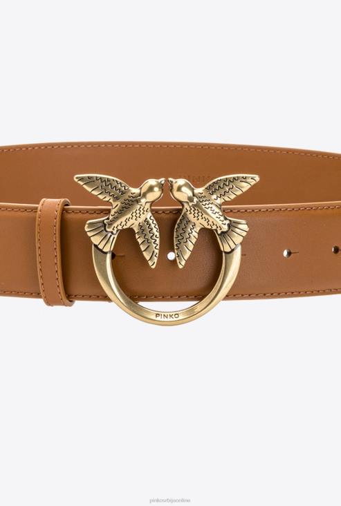 појасеви | Pinko коњак-старинско злато кожни каиш од љубавних птица JFH41016