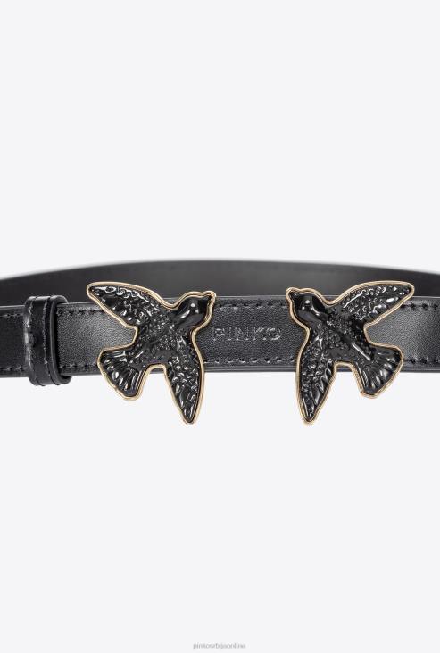 појасеви | Pinko лимузина црна блок боја каиш од танке брушене коже љубавних птица JFH4997