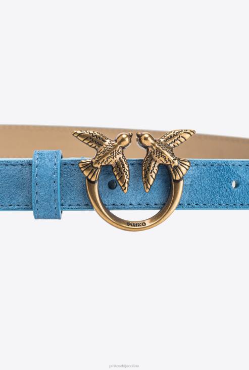 појасеви | Pinko небеско плаво-старинско злато лове бирдс танак каиш од семиша JFH4980