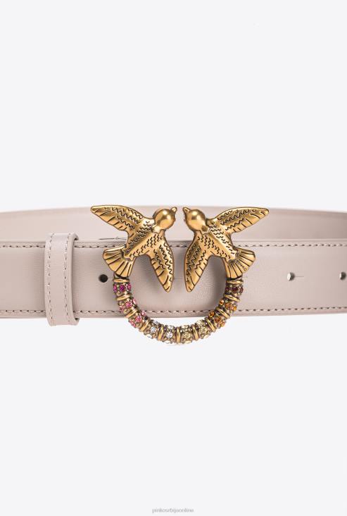 појасеви | Pinko пингвин сиво-старинско злато кожни каиш од љубавних птица JFH4969