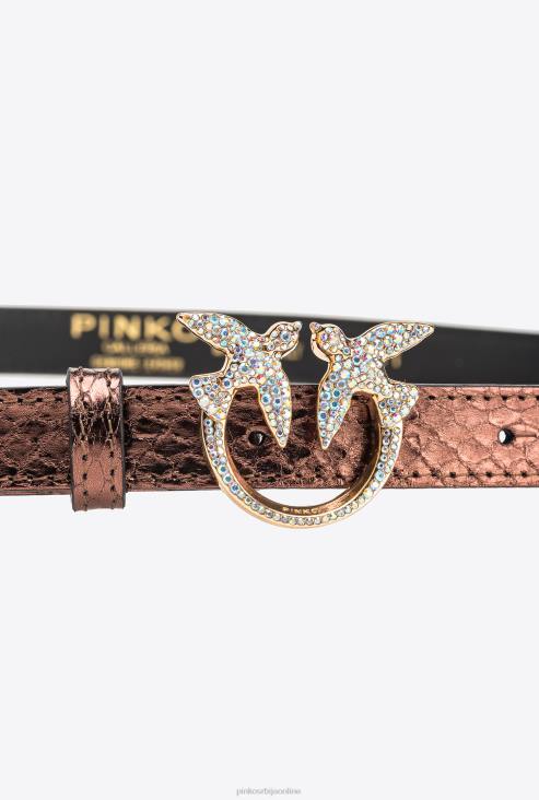појасеви | Pinko светло браон-сјајно злато галлериа танак ламинирани појас коже рептила JFH41024