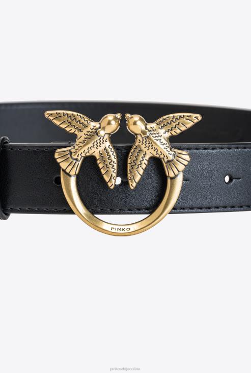 појасеви | Pinko црно-античко злато кожни каиш од љубавних птица JFH41039